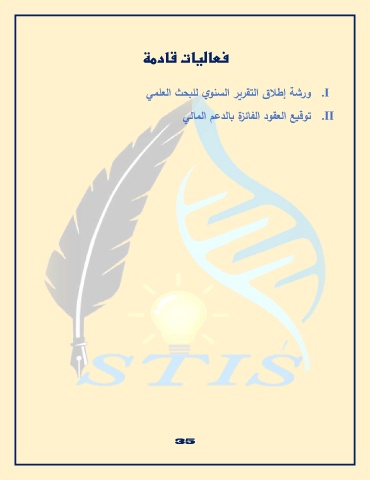 فعاليات قادمة .Iورشة إطلاق التقرير السنوي للبحث العلمي .IIتوقيع العقود الفائزة بالدعم المالي