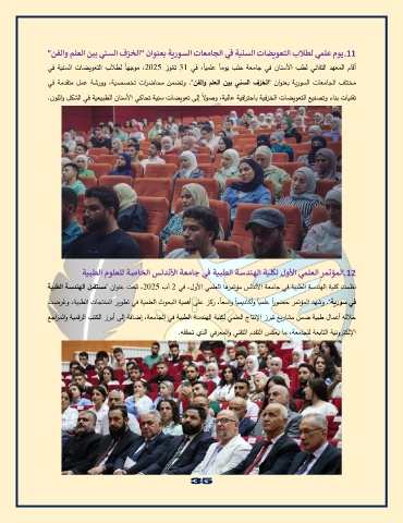 في سورية" .وشهد المؤتمر حضو اًر علمياً وأكاديمياً واسعاً ،ركز على أهمية البحوث العلمية في تطوير المنتجات الطبية ،وعرضت