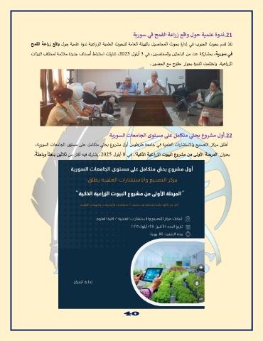بعنوان "المرحلة الأولى من مشروع البيوت الز ارعية الذكية" ،في 9أيلول ،0302يشارك فيه أكثر من ثلاثين باحثا وباحث اة.