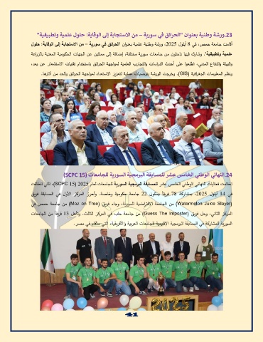 اختتمت فعاليات النهائي الوطني الخامس عشر للمسابقة البرمجية السورية للجامعات لعام ،)SCPC 15( 0302التي انطلقت
